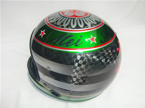 渥美卓郎選手2009~ カーボンメット こだわりのキャンディーグリーン デザインは渥美選手本人で、細部まで凝っていてバランスがとてもよくまとまっています。ルアーがいいでしょ!