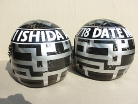 伊達正利選手 3718 石田章央選手 3811 2014~ カーボンベースにラインだとマスキング作業が倍かかるんですよね。 ラインをマスク、貼ったところをガイドにまわりをマスク、最初に貼ったところをはがす、塗る、といった感じ・・・。 布袋バージョン毎回進化です。