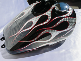 このタンク、前に地金にクリアーのみで仕上げたものです。錆びました。へこみもできたので再塗装・・・。もうしばらくは錆びないでしょう。